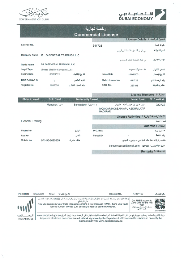 B L O General Trading L.L.C. is an international Trading L.L.C. B L O General Trading L.L.C. is renowned as one of the best Trading L.L.C in Bangladesh.
